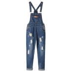 AvaCostume Women's Adjustable Strap Ripped Denim Overalls DarkBlue S