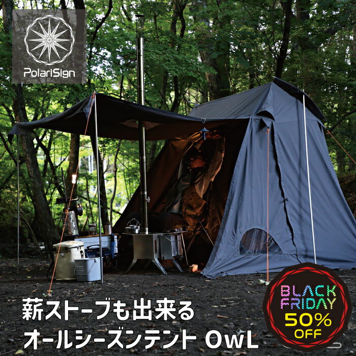 【半額セール】【フルセット】PolariSign (ポラリスサイン) 台形ソロテントOwL(オウル) インナーテント付属 煙突口標準装備 ハイバックチェア 余裕の天井高 全周スカート ソロキャンプ ポリコットン TCテント 薪ストーブ 秋キャンプ 冬キャンプ 煙突穴