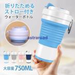 ウォーターボトル 蓋付き 水筒 マイカップ マイタンブラー 折りたためる 持ち運び ポータブル シリコン ストロー カラビナ 折り畳み 折り畳みマイカップ
