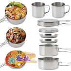 キャンプ用調理器具 8点セット アウトドア 丸型 ステンレス 鍋 フライパン 皿 マグカップ 直火 ポータブル コンパクト 5 6人用 バーベキュー