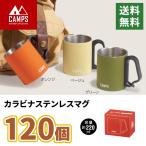マグ 「キャンプス カラビナステンレスマグ 220ml 120個セット」化粧箱入り 3色取り混ぜ 冷温マグ アウトドア キャンプ用品 ノベルティ 大量