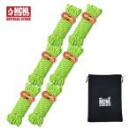 NCNL NO CAMP NO LIFE パラコード テントロープ ガイロープ 反射材入り 耐荷重 430kg 太さ 5mm 長さ 4m 自在金具 収納袋付き (グリーン 6本セット)