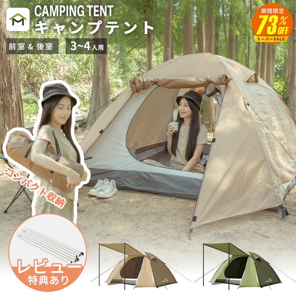 【スーパーSALE期間73%OFF 12/4 20時〜】テント 2人用 1人用テント 前室後室あり 4000mm耐水圧 広い空間 コンパクト ソロテント キャンプテント ツーリングテント オールシーズン 簡単設営 軽量 UVカット 通気防風 アウトドア/登山/山岳/釣り/ピクニック/防災用 送料無料