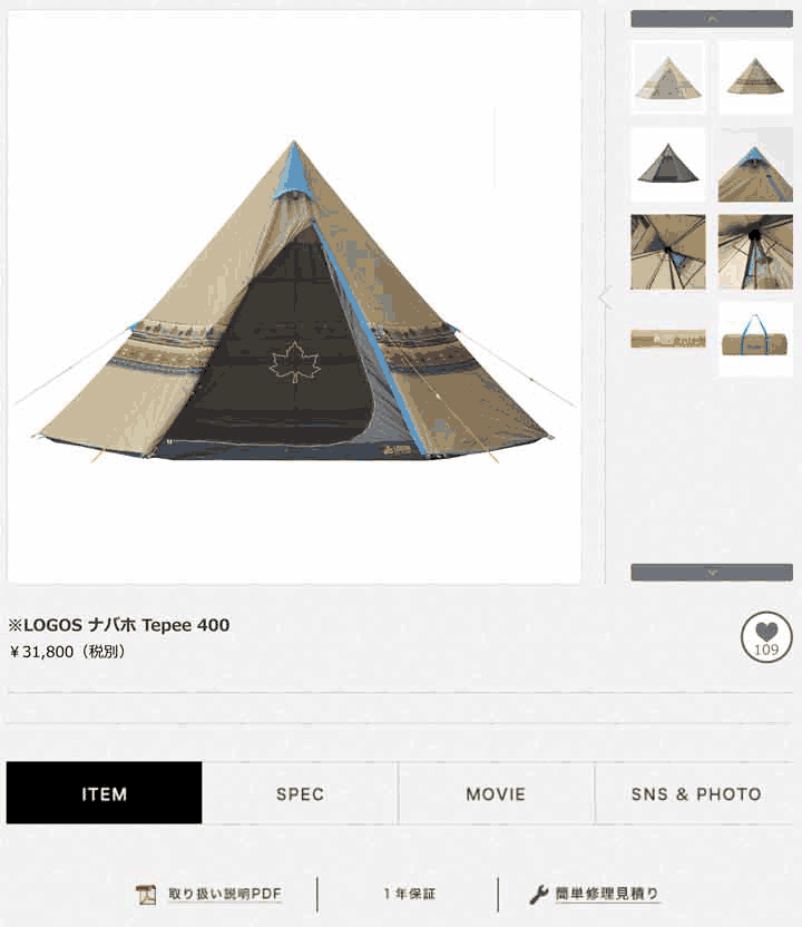 LOGOS ロゴス ナバホ Tepee 400 メーカー取り寄せ品 5%OFF 送料無料 アウトドア テント タープ 大型