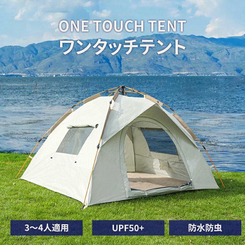 ワンタッチテント 3-4人用 キャンプ テント 数秒設営 二重層 設営簡単 初心者向け ワンタッチ キャンプ アウトドア 防風 防災用