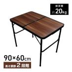 アウトドアテーブル アルミ レジャーテーブル 軽量折りたたみ 高さ調整 90cm x 60cm 木目 机 バーベキュー BBQ キャンプ 運動会 お花見 A61A002