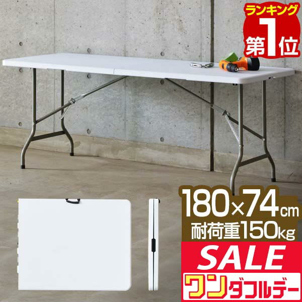 折りたたみテーブル 180cm アウトドアテーブル 折りたたみ 頑丈 大型 幅180×奥行70cm ガーデンテーブル ガーデン テーブル アウトドア 海 海水浴 イベント 長テーブル 折り畳み式 外テーブル ###机KM-F002###