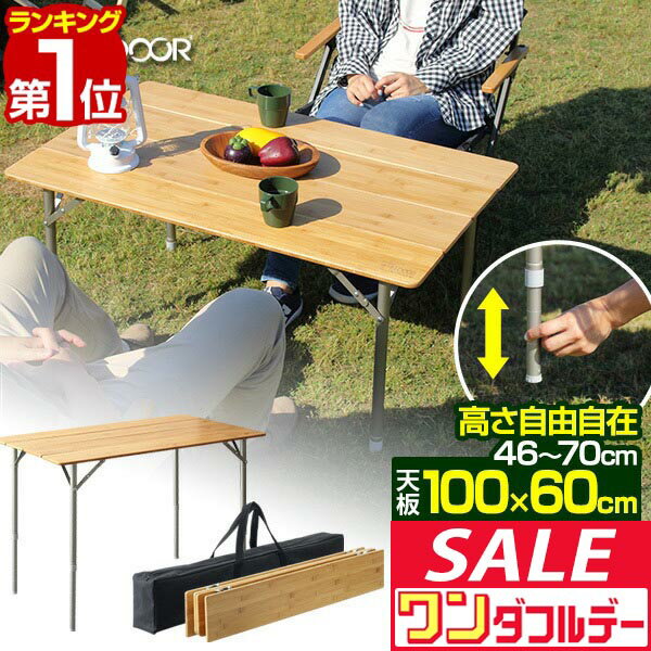 テーブル 折りたたみ 幅100cm 無段階高さ調節可能46-70cm アウトドア キャンプ 在宅勤務 テレワーク レジャーテーブル ピクニック バンブー 1年保証 送料無料
