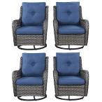 【並行輸入品】 VICLLAX パティオバー5点セット 芝生の庭用 高さ35.5インチのメタルテーブルと籐製の屋外回転式バースツール4本 ウォール