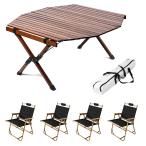 [長方形・椅子4脚] VeroMan テーブルセット アウトドア用品 アウトドアテーブル 自然な木目調のラウンドテーブルセット 屋外家具 韓国インテリア