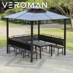 [260cm・テーブル・ベンチ・カーテン込み] VeroMan あずまや サンシェルター 庭 日よけ シェード 屋外 アルミ合金 紫外線カット 韓国インテリア