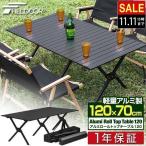 1年保証 折りたたみアルミロールトップテーブル 108cm×60cm 高さ44cm ハンガー付き 軽量 ローテーブル ロールテーブル アウトドア キャンプ 送料無料