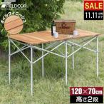 アウトドアテーブル 安心の1年保証 折りたたみ 木製 120cm ウッドロールテーブル ローテーブル レジャー キャンプ バーベキュー 軽量 大きい FIELDOOR 送料無料