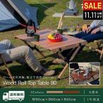レジャーテーブル ロールテーブル 木製 折りたたみ ウッドロールトップテーブル 90cm×60cm バーベキュー ローテーブル アウトドア キャンプ 1年保証 送料無料