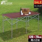 アウトドアテーブル 折りたたみ ロールテーブル ローテーブル 120cm×70cm 高さ45cm 大きい アルミ 軽量 コンパクト バーベキュー FIELDOOR 1年保証 送料無料