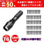 LEDハンディライトASAHI 50点セット LED懐中電灯 防水 1800ルーメン 広角 ズーム T6 LEDライト 懐中電灯 防犯 防災 強力LED 電池式 送料無料