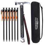 ペグハンマー 軽量 キャンプハンマー 3in1多機能 (抜く/打つ/掘る) 高炭素鋼製 固定用リベット追加 アルミ製ハンドル テントハンマー 収納袋付き