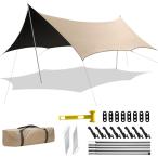 【在庫処分】アウトドアタープ 天幕 防水 撥水加工 日除け 遮光 遮熱 難燃 耐水 軽量 UPF50+ UVカット 210D 高密度生地 テント ペグ ロープ 収納ケース付