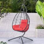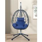 【並行輸入品】スイングエッグチェア スタンド付き 屋内 屋外 ウィッカー ラタン パティオ バスケット ハンギングチェア UV耐性クッション ア