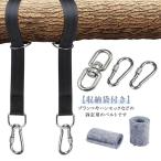 ハンモック固定用ベルト 簡単設置 キャンプ ハンモックベルト ツリーストラップ 吊り下げベルト 耐摩耗 ブラック カラビナ2個 ロープ ブランコ用ベル