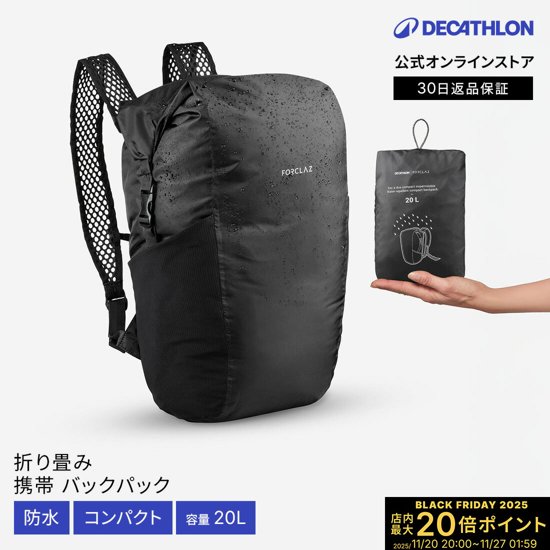 軽量リュック バックパック 30L ハイキングデイパック 旅行バックパック 折りたたみ式(ブラック)