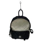 CHANEL◆ミニバックパック/リュック/ツイード/ナイロン/BLK/総柄/ココマーク/ロゴ//