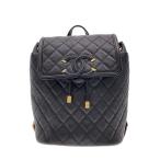 CHANEL◆トリプルココ バックパック/レザー/BLK/無地