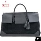 アカーテ ボストンバッグ カーフ シュリンクレザー×スエード フラップ ボストンバッグ オストロ M ACATE OSTRO_M ACT SH/SU BLACK 返品交換不可