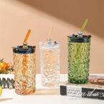 グラス カップ 540ml 350ml耐熱ガラス マグカップ 透明 ストロー ボトル 水筒 コーヒーカップ ティーカップ おしゃれ 高い密封性 漏れ防止