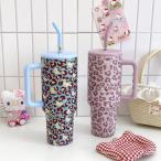 キティ ヒョウ柄 タンブラー マグカップ 真空断熱 保冷 保温 水筒 直飲み ステンレス 蓋付き 持ち運び ストロー キャラクター かわいい 1200ml
