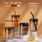 コーヒーボトル 450ml ウォーターボトル ガラス 水筒 ガラスボトル クリアボトル 2way 直飲み?ストロー 耐熱 ストロー付 蓋付き カップカバー付き おしゃれ