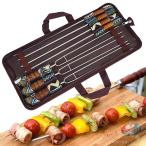 BBQフォーク&串 ステンレスU字型 木製ハンドル ピークル ポータブルで持ち運び簡単 ピクニック・キャンプ調理に使えるバーベキュー串セット