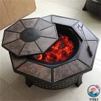 ファイヤーピット バーベキューコンロ 焚き火台 バーベキューコンロ 焼肉 テーブル 火ピットボウルコートヤード八角形のセラミックバーベキュー表木炭屋外バーベ