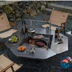 屋外ストーブ ティーテーブル 多機能 六角形ラウンド木製テーブル バーベキューテーブル 折りたたみテーブル 5in1