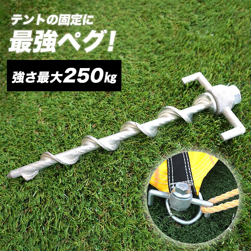 [全品10%OFF×15日限定クーポン]ペグ テント 強力ペグ 杭 アンカー ロープをかけるタイプ/40Φ/250mm[メーカー直送品][イベント テント 設営 フレキシブルペグ フレペグ] JQ