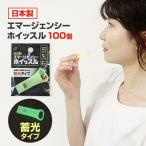 エマージェンシーホイッスル(蓄光) 100個セット(06-109) 日本製 軽くて薄い 濡れても使える コンパクト 防災用品 災害備蓄 防犯用品