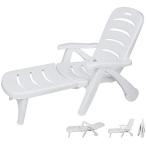 折りたたみ式リクライニングチェア サンラウンジャー ホワイト 厚みのあるプラスチック 5 高さ調節可能な背もたれ ビーチチェア アウトドア ホリデー ガーデン