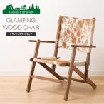 アウトドアチェア 折りたたみ 木製 ロータイプ 仔牛ハラコ グランピングウッドチェア フォールディングチェア C-F-3