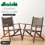 アウトドアチェア 2脚セット 折りたたみ 木製 ロータイプ カーキ キャンバス グランピングウッドチェア フォールディングチェア C-F-3