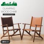 アウトドアチェア 2脚セット 折りたたみ 木製 ロータイプ レザー グランピングウッドチェア フォールディングチェア C-F-3