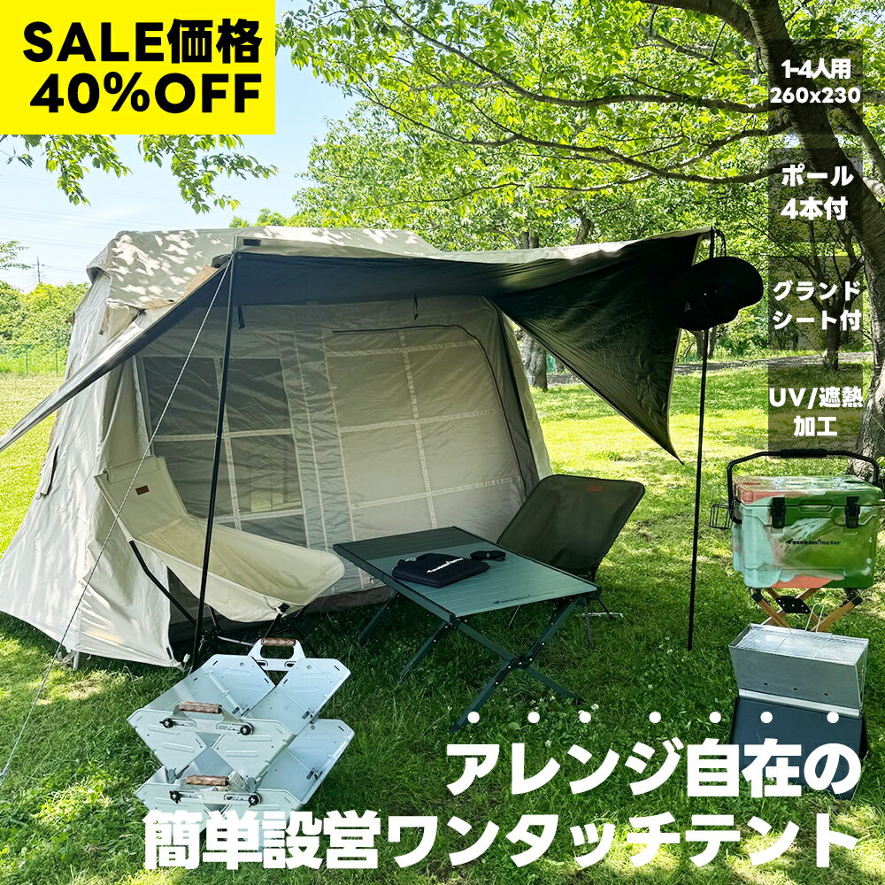 【スーパーセール40%OFF】ワンタッチテント 4人用 キャンプ アウトドア テント 4人用テント テント4人用 ファミリーテント ワンタッチ キャンプテント 4人用 ファミリー 大型 家族 自立式テント uv かっこいい おしゃれ ロッジ型テント ロッジテント 大型テント グランピン