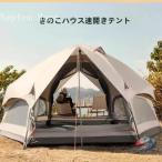 ロッジテント グランピング 原始人 ワンタッチテント ツールーム おしゃれ 簡単設置 大空間 3~4人 ロッジ型 ベージュ