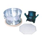 (網ズレ防止金具付き 4個セット特価) しちりん 丸型 直径28cm 高さ17cm (火バサミ、敷台、丸アミ、取っ手付き) 珪藻土 七輪 BBQ バーベキューコンロ 炭火焼 zm