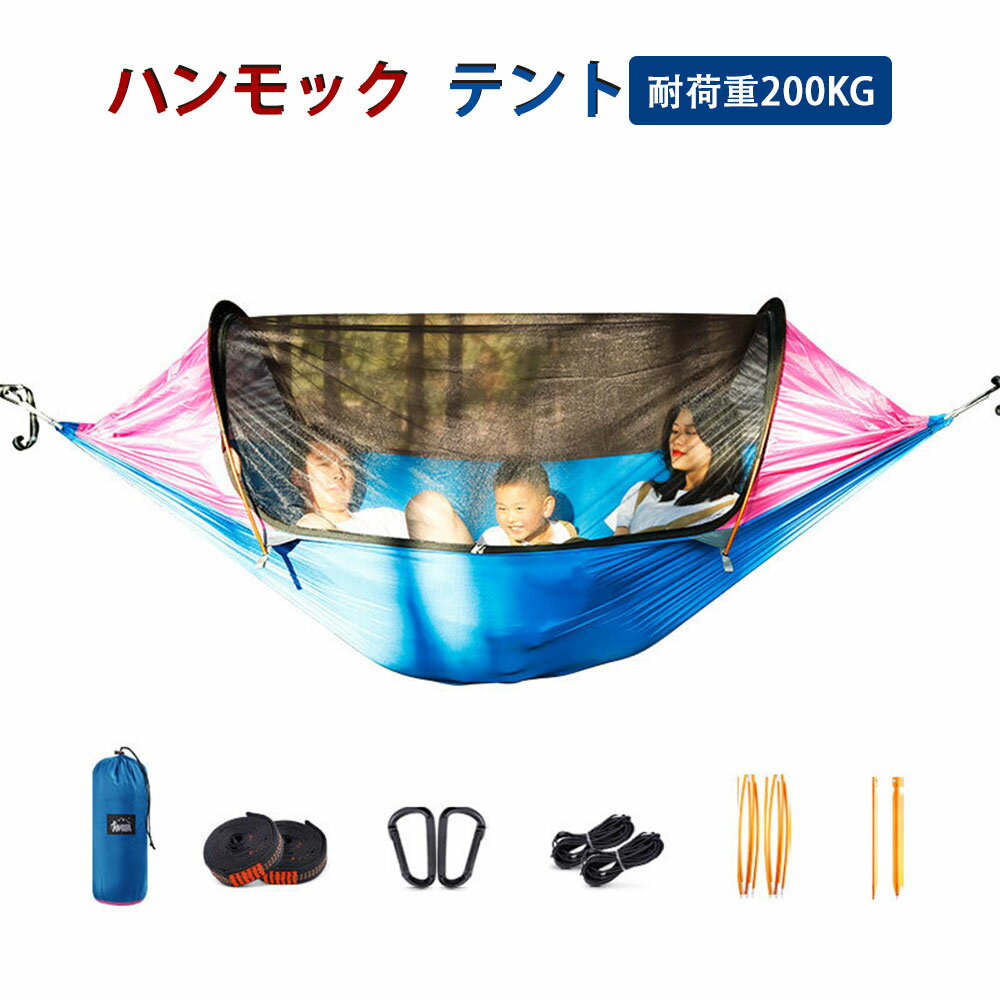 ハンモック 蚊帳 テント キャンプ 収納パック 高耐荷重 シングル ダブル 耐荷重200kg 室内 室外 アウトドア 森 虫よけ カラビナ バックル 公園 転倒防止 通気性抜群 虫除けネット カラビナ付き ベルト付き 木に取り付け 屋外 室内兼用 公園 森林 海辺 登山 レジャー