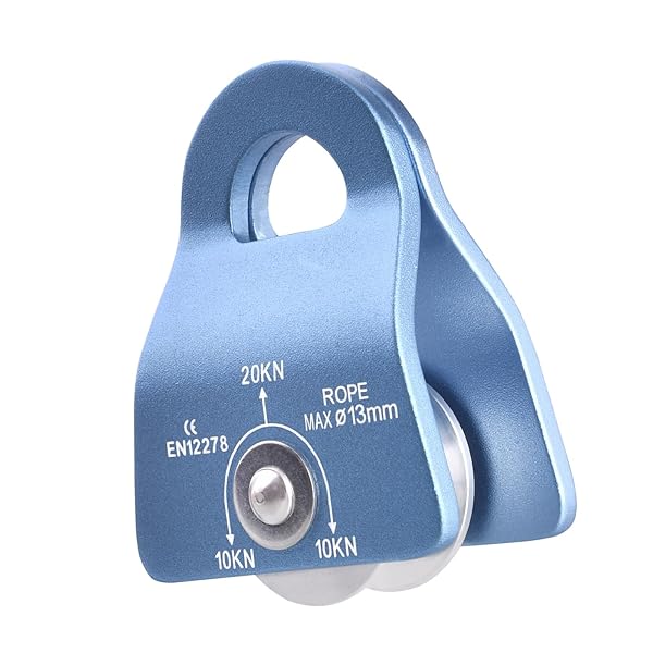 クライミングプーリー 登山プーリー 15mmロープ用 32KN 軽量 耐摩耗性 汎用 シングル滑車 探検/クライミング用/高空作業/救助(青)