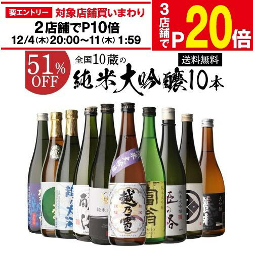 12/5限定 全品P3倍 日本酒 飲み比べ 酒 純米大吟醸 送料無料 全国10蔵 720ml 10本セット ギフト お酒 長S ギフト 贈り物 予約 2025/12/5以降発送予定