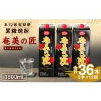ふるさと納税 焼酎 黒糖 鹿児島県 天城町 定期便年12回 鹿児島県天城町 黒糖 焼酎 奄美の匠 1800ml 3本×12回 合計36本 定期便 焼酎 お酒 酒 アルコール 25度…