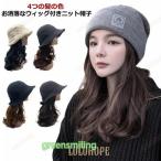 帽子ウィッグ レディース かつら ロング巻き 暖かい つけ毛 エクステ キャップ 髪付き帽子 セミロング 自然パーマ ニット 日常用 可愛い