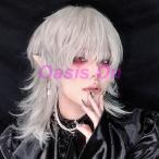 ウィッグ シルバー メンズ レディース かつら ショート ウルフ フルウィッグ 男装 男性 原宿 イケメン ハンサム 自然 小顔 耐熱