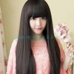 用フルウィッグ ロング レディースウィッグ ストレート 女装ウィッグ 黒髪かつら 前髪ウィッグぱっつん 小顔 ウィッグ ミディアム